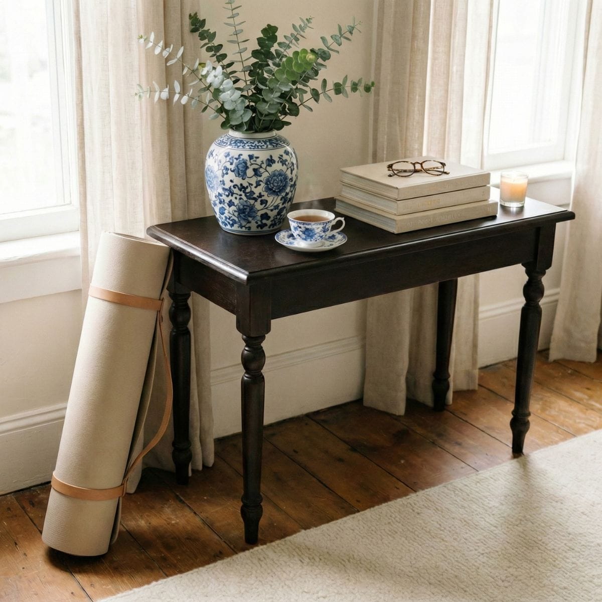 - The Ritual Anchor: A floral ginger jar placed nearby to hold your focus and beauty during your stretching.